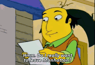 Hmm. Do I really want to leave Manhattan? Sherman, I just realized you insulted me. Now you will die. Hey, nudnik, your shoe's untied. From here, they appear to be tied. But I will go in for a closer look.