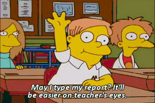 May I type my report? It'll be easier on teacher's eyes. Yes. In fact, why doesn't everyone type their paper? Great idea, Martin. Can the paper be 10 pages minimum?
