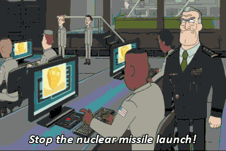 Stop the nuclear missile launch! Just launch the missiles! Boo! Not cool! I'm the only one that speaks to the Heads! Disqualified! The Heads disqualified Vagina! Get him! Disqualified!
