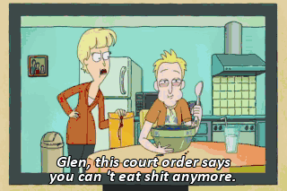 Glen, this court order says you can 't eat shit anymore. All right, Jerry. When you're right, you're right. Now I'm hooked.