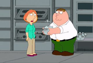 (IN PETER'S VOICE) Guess it doesn't do anything. (IN LOIS' VOICE) Well, that seems odd. (BOTH YELLING) Oh, my God, Peter! You're me! Holy crap! Sweet! (CHUCKLING) (HUMMING)