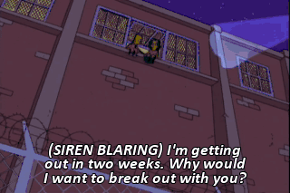 (SIREN BLARING) I'm getting out in two weeks. Why would I want to break out with you? (SWOONING) Well, you do look pretty in the moonlight. (GRUNTS) (DOGS BARKING) Hey, guard! Help! Help!