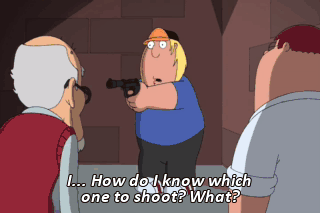 I... How do I know which one to shoot? What? How do I know which one is the real dad? I... We never switched. We don't even look the same! All right, when's my birthday? Aw, crap. February 8th. (SCREAMS) Dad!
