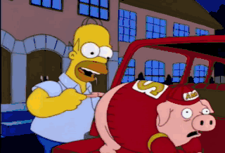 Curly, straight. Curly, straight. Ow! Why, you little-- Mr. Simpson, stop! It's a defenseless animal! The pig's acting kinda funny. He and Mr. Simpson split a case of malt liquor.