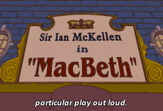 particular play out loud. You mean Macbeth? Quiet, you blundering fool! You'll curse us all! What? By saying Macbeth? Stop saying it! Saying what? Macbeth! Ah! Now I've said it!