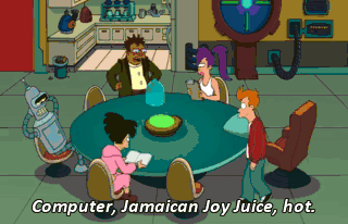 Computer, Jamaican Joy Juice, hot. G.N.E. Behold the Time Button. A pocket-sized device that sends the entire universe 10 seconds into the past. I will now demonstrate.