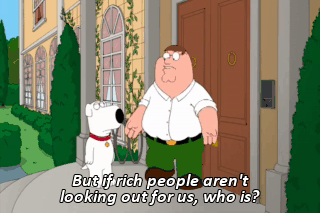 But if rich people aren't looking out for us, who is?