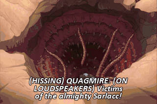 (HISSING) QUAGMIRE: (ON LOUDSPEAKERS) Victims of the almighty Sarlacc!