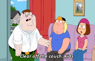 Clear off the couch, kids. I'm gonna do your mother right here. But you guys might have to help stuff me in. Oh, my God, Peter! Oh, I'm leaving. I cannot get sick right now.