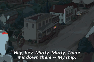 Hey, hey, Marty, Marty, There it is down there -- My ship.
