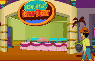 This here the buffet. Ooh! Perfect timing! It's the weekly changing of the shrimp!