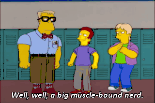 Well, well, a big muscle-bound nerd. Ha! Just more of you to pick on. The geek shall inherit the earth. There she is, boy.