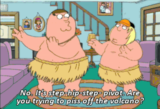 No. It's step-hip-step- pivot. Are you trying to piss off the volcano?