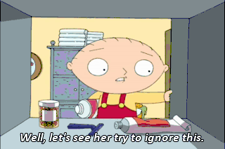 Well, let's see her try to ignore this. Lois, help! I ate this whole jar of pills that look like candy and now I feel sick. You look like a jackass. Can't hear you, Brian. I'm dead. All right.