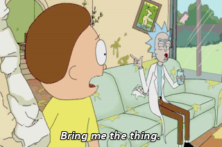 Bring me the thing. What --what thing? The thing. The thing. It's got, like, buttons on it and lights on it, It -- it -- it beeps. Rick! That describes everything in your garage!