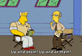 Up and atom! Up and at them! - Up and atom! - Up and at them! Better. Hi, Milhouse! Hey, I want you to know... that I'm glad at least one of us got the part.