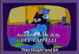 They fought and bit they fought and fought and biT fought, fought, fought bit, bit, bit it was the itchy and scratchy show