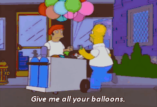 Give me all your balloons. I hope this works. These are for you if you let me use your cherry picker. Well, I've already got some balloons, but they're not this nice. Deal!