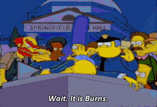Wait. It is Burns. His wrinkly skin looks like a mask. I don't think we'll ever know who did this. Everyone in town's a suspect.