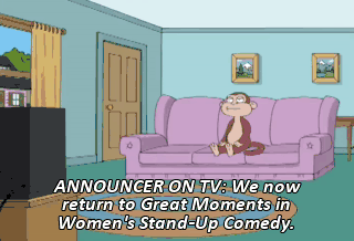 ANNOUNCER ON TV: We now return to Great Moments in Women's Stand-Up Comedy.
