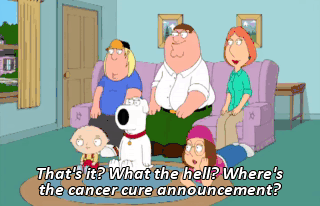 That's it? What the hell? Where's the cancer cure announcement? That son of a bitch went back on his word.