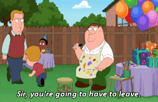 Sir, you're going to have to leave. You're just drawing penises with a Sharpie on children's faces.