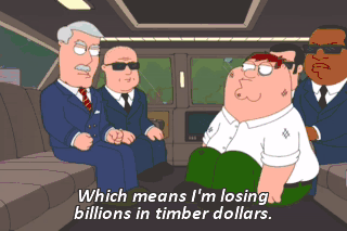 Which means I'm losing billions in timber dollars. I had to sell my Bangles records.