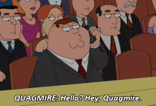 QUAGMIRE: Hello? Hey, Quagmire. Hey, Peter, what's up? I'm stuck at the stupid ballet. Get out of here. You serious? Yeah. So am I! What? Yeah, I got dragged here by this broad I'm trying to screw.