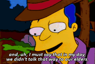 and, uh, I must say that in my day, we didn't talk that way to our elders.
