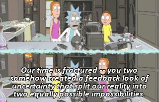 Our time is fractured -- you two somehow created a feedback look of uncertainty that split our reality into two equally possible impossibilities.