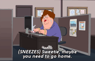 (SNEEZES) Sweetie, maybe you need to go home. I'm not going home. I cannot get sick right now.