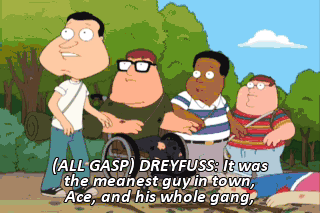 (ALL GASP) DREYFUSS: It was the meanest guy in town, Ace, and his whole gang, Beast Man, Mer-Man and, for some reason, Norm from Cheers. Hey, gang. What, are we beating somebody up?