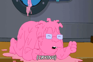 (CRYING) Man! I'm dripping with placenta. Good thing it's Casual Friday. Amy Wong! Ooh! Baby soft. Indeed.