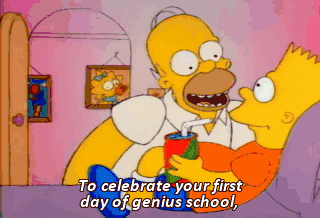 To celebrate your first day of genius school, what do you say we go out for a round of frosty chocolate milkshakes ? All righty !