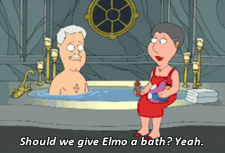 Should we give Elmo a bath? Yeah. - Should we give Telly a bath? - Yeah! Should we give Ernie a bath? No. Ernie doesn't like the monsters.