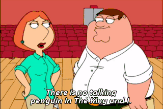 There is no talking penguin in The King and I. There is in "Peter Griffin presents The King and I." What? Now we just gotta think of some wicked funny stuff for him to say.