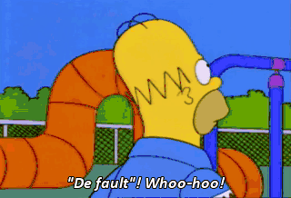 "De fault"! Whoo-hoo! The two sweetest words in the English language. De fault, de fault, de-- Where'd you get that anyway? Sent away. The Itchy and Scratchy Show