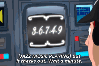 (JAZZ MUSIC PLAYING) But it checks out. Wait a minute.