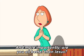 And more importantly, are you all better than Jesus? I'm better than Jesus. Okay, yes, Tina Fey, you're better than Jesus.