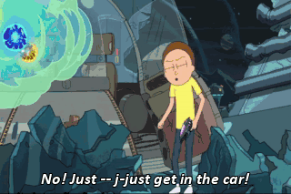 No! Just -- j-just get in the car! Marty, come on. I want to go back to Blips and Chitz. I don't want to deal with this. Rick, you've been clear on the fact that you don't want to help, so just go away.