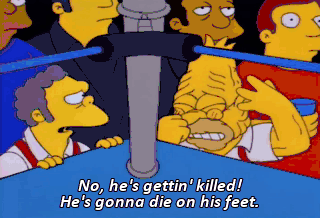 No, he's gettin' killed! He's gonna die on his feet.