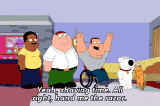 Yeah, shaving time. All right, hand me the razor. (MEOWS IN PAIN) Oh, my God! Peter, you killed it! Will you guys relax? He's got eight more lives. Okay, seven more lives. Six. Five. Four. Three.